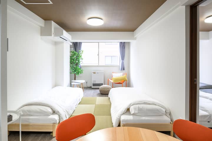 *如果您使用一间房间供6人入住,您可以在客厅铺设自己的日式床垫并睡觉。感谢您的理解。