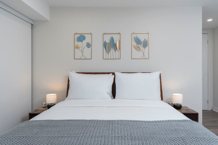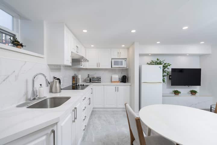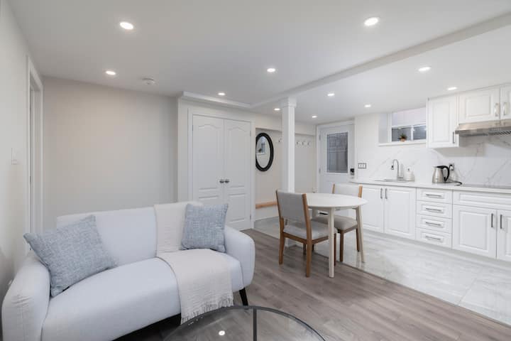 欢迎入住我们位于Trinity Bellwoods市中心新装修的1卧室地下公寓! 这套舒适的房源明亮而现代,设有全功能厨房、舒适的标准双人床和独立卫生间。 距离三一贝尔伍兹公园、奥辛顿街、大学街和皇后街仅几分钟路程。 您可以轻松前往市内一些最好的餐厅、时尚商店、咖啡馆和公共交通。 在多伦多最具活力的街区之一享受无缝自助入住和舒适住宿!