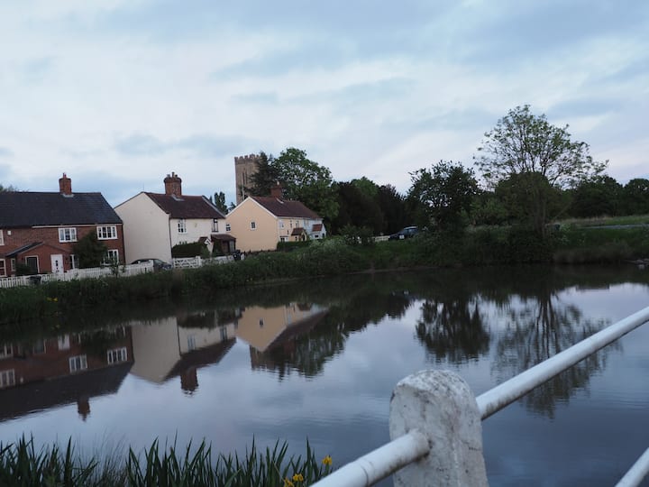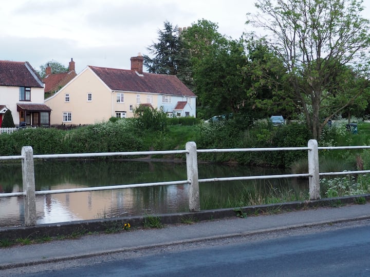可爱的小屋,毗邻教堂、池塘和公共区域。