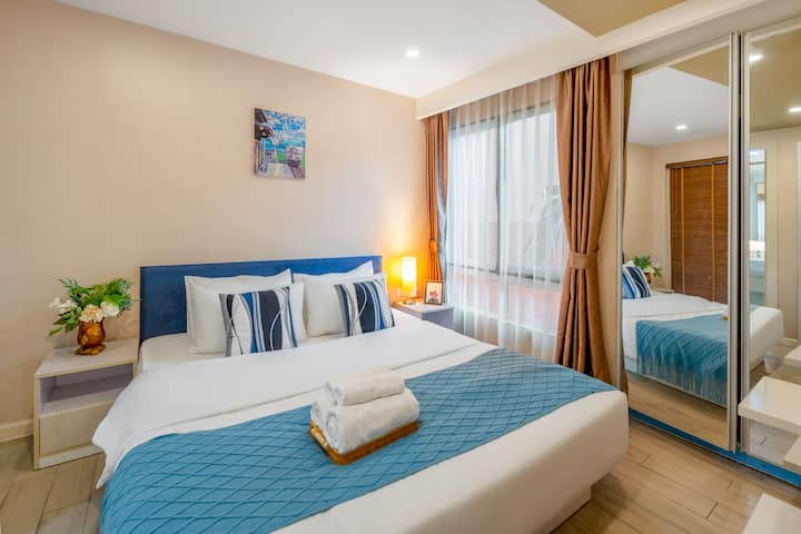 房源位于芭堤雅中天的七海公寓度假村(Seven Seas Condo Resort),步行5分钟即可抵达中天海滩,开车约15分钟即可抵达市中心。 该项目采用「七星级矩阵」水上主题设计,融合了法国蔚蓝海岸风格与热带景观,是芭堤雅最大的度假社区,提供高档生活体验和日常便利。