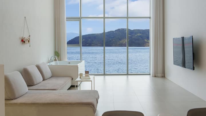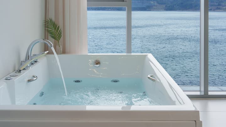 在巨济灯塔享受海景、水疗、泳池、篝火、日落和钓鱼体验,享受治愈之旅。