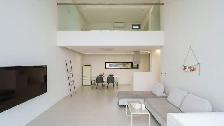 单间公寓类型,1间客厅+卧室(2张标准双人床、1张特大双人床)+ 1间厨房+ 1间卫生间