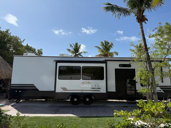 这辆宽敞时尚的新房车坐落在备受追捧的Key Largo Kampground & Marina,让您远离尘嚣,享受天堂般的体验! 这款设备齐全的房车非常适合家庭或小团体入住,提供舒适的家居环境,距离度假村式便利设施仅几步之遥。