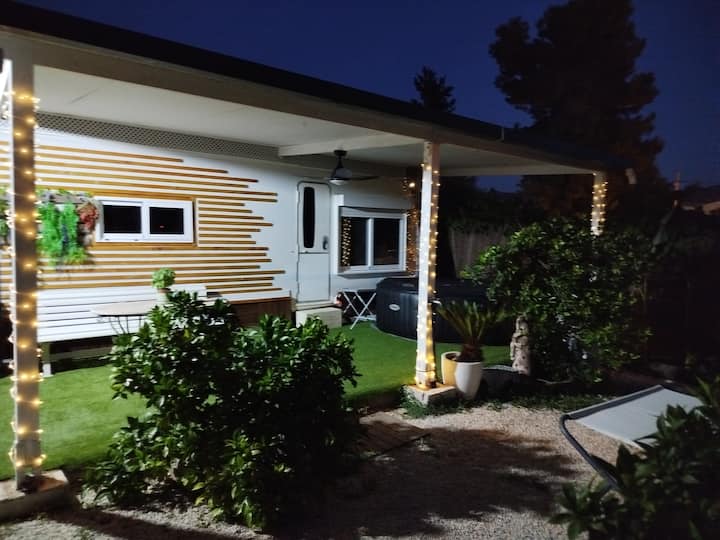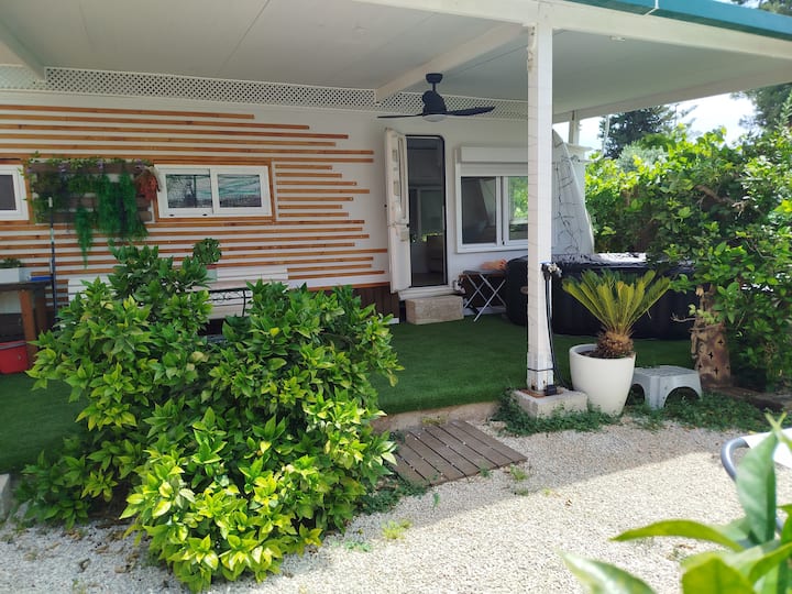 带按摩浴缸的花园房车。