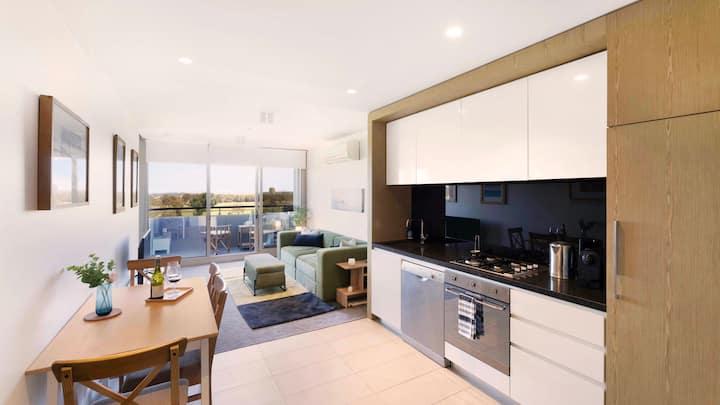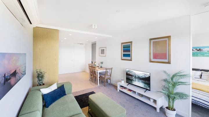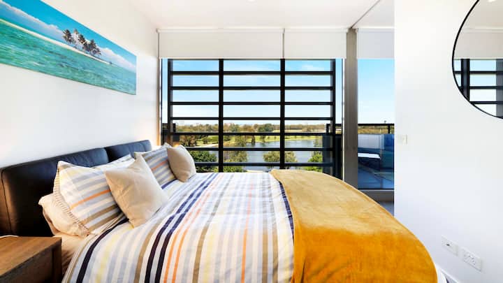 哇!湖泊、海湾、城市天际线景观2卧室度假屋