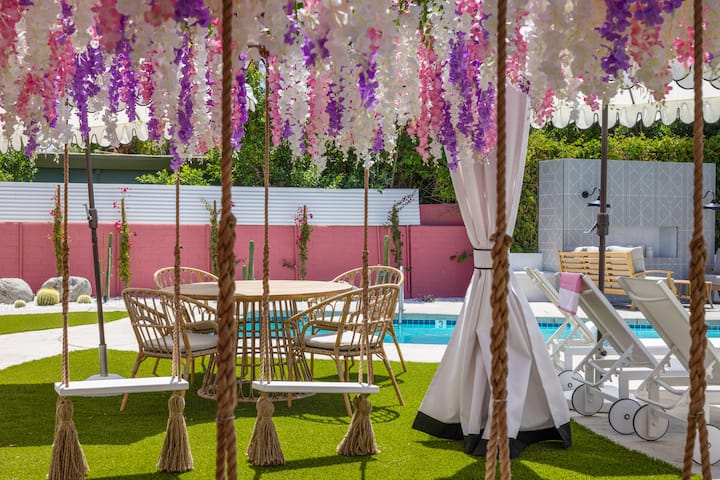 我们充满活力的庭院既放松又兴奋。 您可以在我们的热水浴缸中放松身心,在恒温泳池中畅游,或在室外壁炉前舒适地阅读书籍。 在我们优雅的自助酒吧调制鸡尾酒,非常适合单身女郎庆祝活动。 🏊♂️🔥