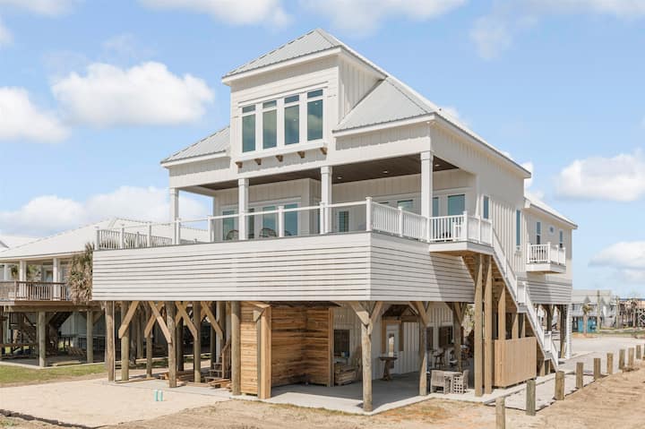 欢迎来到波旁湾,您在大岛的梦想海滨度假胜地–在这座位于路易斯安那州海岸的华丽的2025年新建海滨房源中放松身心,沐浴阳光–您的完美奢华度假胜地! 这座宽敞的度假胜地拥有5间卧室、5间浴室和10张床,最多可容纳20位房客,是家庭、渔民或团体度假的理想之选。