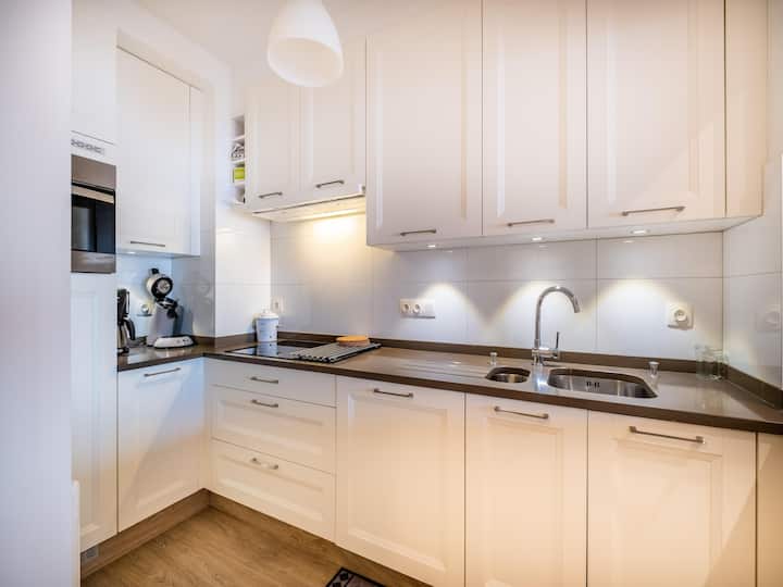 Completely renovated and stylishly furnished 2 room apartment on the seafront. 2nd floor with elevator Within walking distance of the shops and public transport. Non smokers, pets not allowed. Garage included.