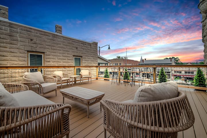 走出房源,您可以在私人屋顶露台俯瞰弗雷德里克斯堡的标志性主街。 这个迷人的户外空间配有豪华座椅,可欣赏城里最美的景色。 无论您是品尝山地葡萄酒、享受友好比赛,还是欣赏弗雷德里克斯堡最受欢迎的游行景点,这个空间都是真正的亮点。 从品酒和购物到庆祝特殊场合,这座奢华的市中心天堂承诺在市中心提供难忘的住宿体验。