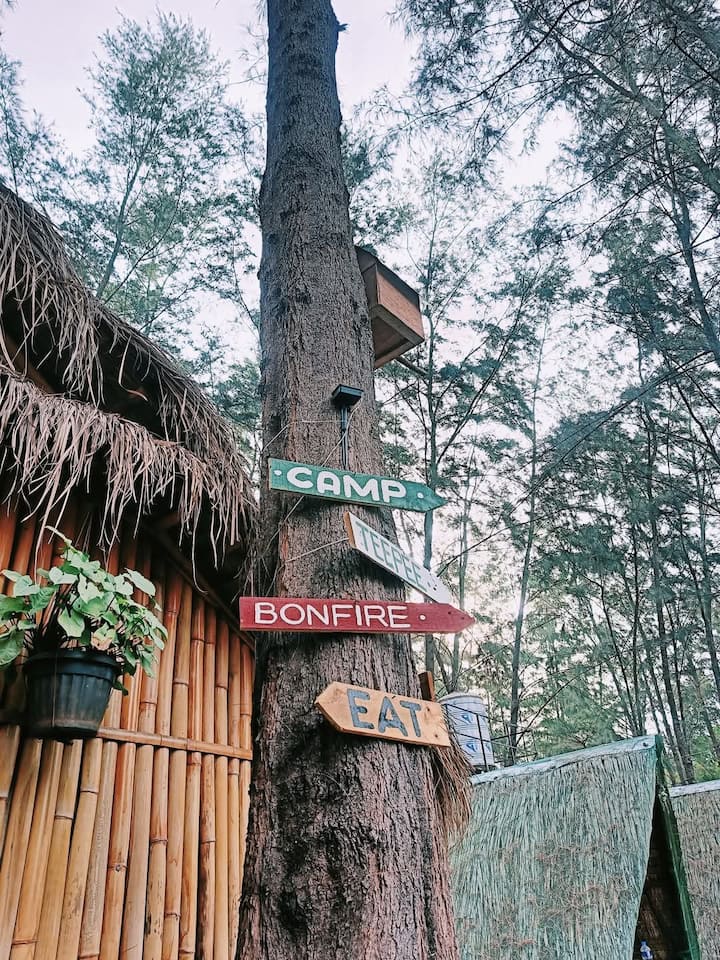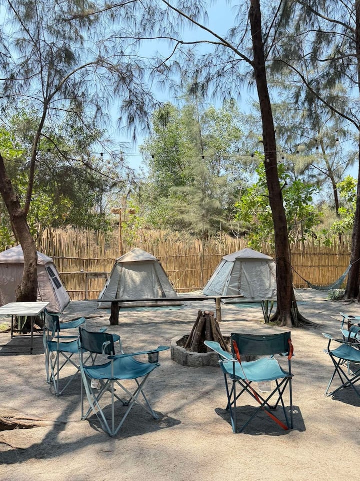 我们的四个印第安帐篷中有三个配有独立的空调,另一个是风扇房。 我们有一个篝火坑、自带厨房(免费使用)和一个用餐区,您可以在那里与他人交流。 如果你想营造露营氛围,也可以自己搭帐篷,挂吊床。
