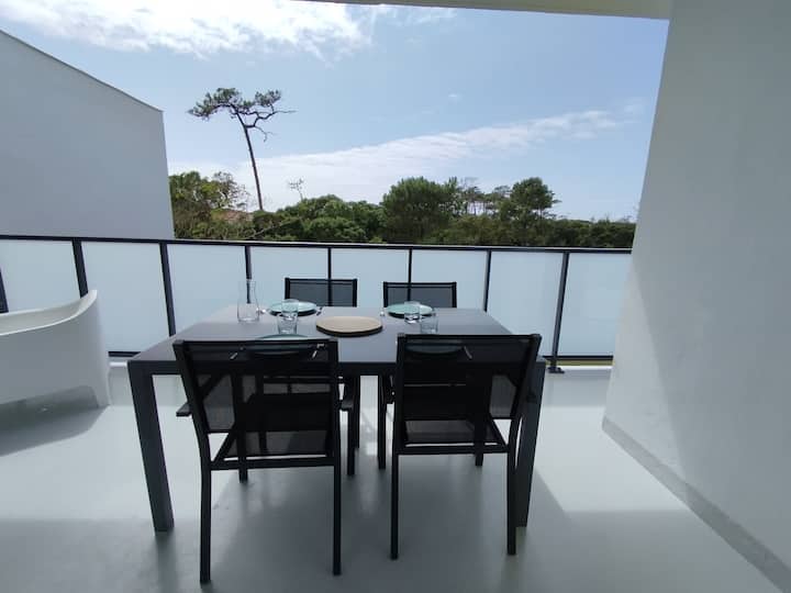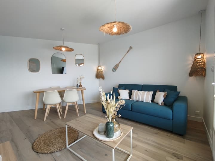 漂亮的T2美丽露台,步行5分钟即可到达海滩