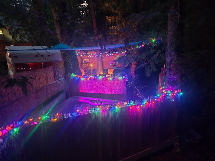 热水浴缸、黑胶唱片、篝火坑、小溪、气候控制