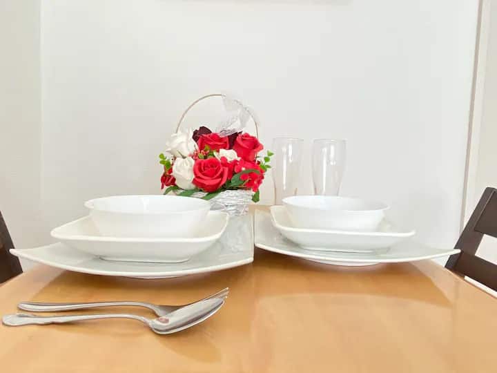 ・此外,还提供各种餐具和炊具。日常生活所需的物品和家电一应俱全。