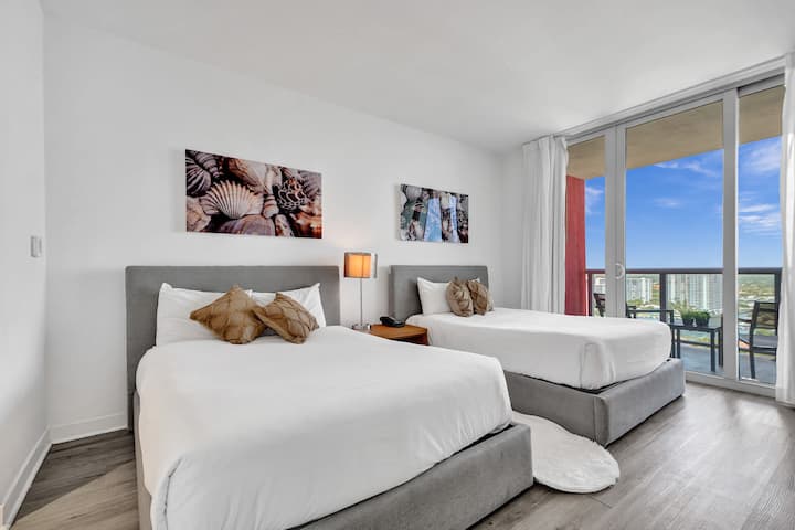 入住我们迷人的单间公寓,放松和便利。 享受优质度假村式便利设施,包括闪闪发光的游泳池、设备齐全的健身房和迷人的现场小酒馆。 免费穿梭巴士可轻松游览哈兰代尔海滩( Hallandale Beach ) ,提供沙滩毛巾和椅子,让您在海边放松身心。 对于那些寻求小冒险的人,租自行车,按照自己的节奏探索热闹的哈兰代尔海滩街区。 在海滩步道度假村( Beachwalk Resort ) ,您的住宿不仅仅是一个简单的假期,这是通往南佛罗里达市中心的门户。