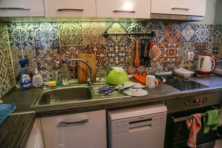 我们在布尔加斯海滨市中心买了一套现成的爱彼迎公寓。 距离步行街「Bogoridi」2-3分钟,距离海洋公园7-8分钟,距离黑海10分钟。