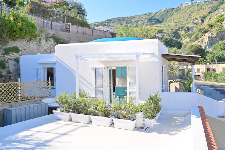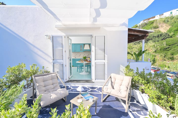 海滨别墅,位于圣安吉洛入口处,配备双人卧室、带沙发床的客厅、设备齐全的厨房、俯瞰大海的全景露台、无线网络、空调和30米外的安全停车场。