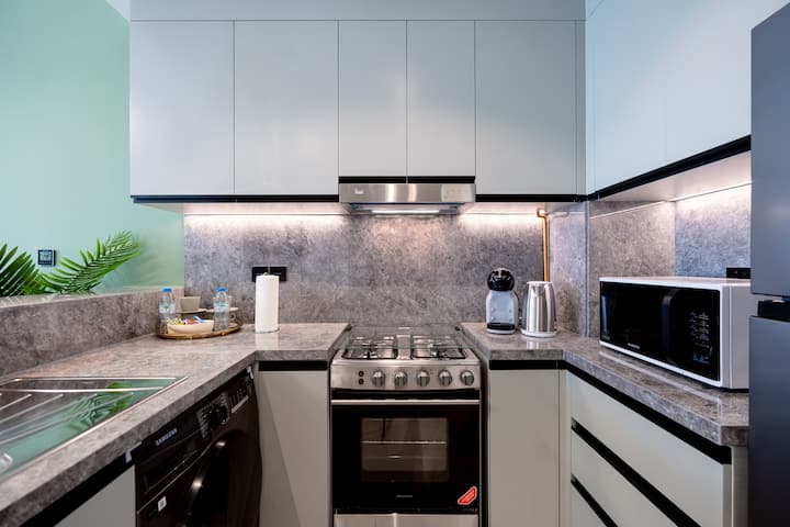 醒来后,煮一杯新鲜的咖啡,在阳台上欣赏城市的活力。 如果您必须工作,那就工作,但如果您想放松,那就放松。 这是您在迪拜的宁静角落—时尚、宁静,让您有宾至如归的感觉。