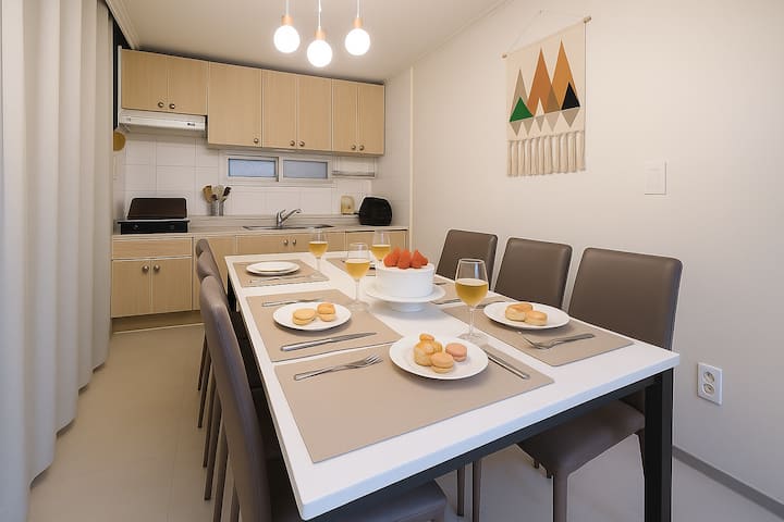 地理位置优越,您可以在30分钟内享受高速无线网络,并在30分钟内到达首尔的主要景点。 提供所有便利设施,如空调、洗衣机、烘干机、躺椅沙发、咖啡机、电视(Utube、Netflix)。