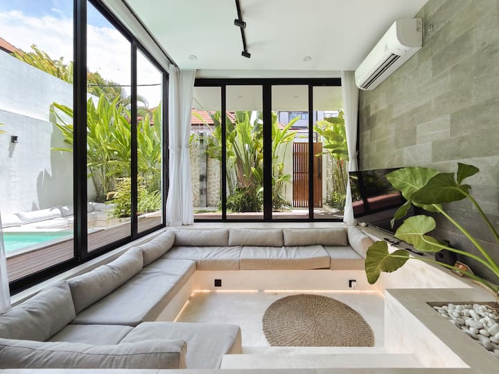 Cemagi舒适别墅,带热带泳池和休息室