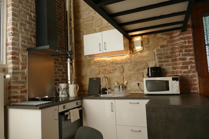 明亮的单间公寓,带设备齐全的厨房和夹层
