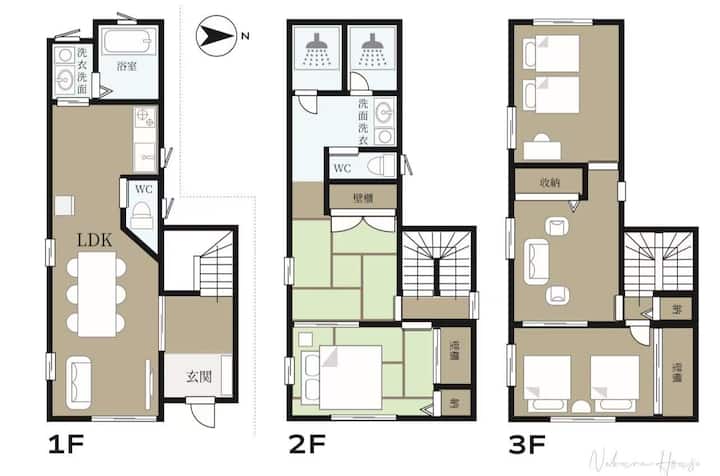 市中心私享独栋别墅 ・难波站直达2分/梅田直达14分・2浴室・2 卫生间最大入住10人