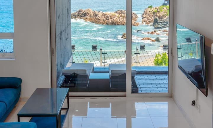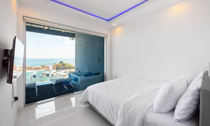 Exit泳池别墅是一座四季温水泳池别墅,拥有凉爽的东海。