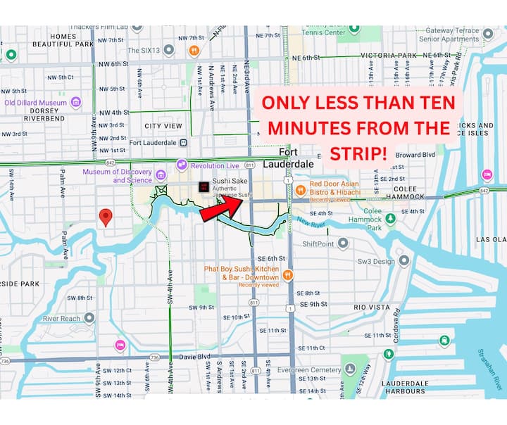 该房源坐落在历史悠久、充满活力的Sailboat Bend街区,距离Las Olas Boulevard和风景优美的河滨步道仅几步之遥。 漫步前往精品店、艺术画廊和劳德代尔堡的一些顶级餐厅,或在码头享用运河边的鸡尾酒。 步行几分钟即可抵达布劳沃德表演艺术中心、NSU艺术博物馆和探索与科学博物馆等文化景点。 在周末,您可以在FATVillage的热闹艺术漫步中探索这里的创意氛围,或是向东前往劳德代尔堡海滩享受阳光和冲浪。 门外有很多东西,您可以轻松享受放松和兴奋的完美结合。