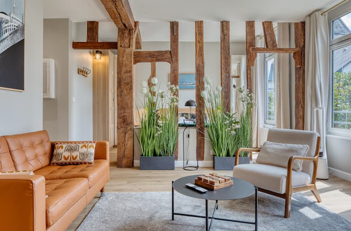 这套卓越的公寓位于宁静的步行街中心,距离鲁昂著名的大教堂仅几步之遥,让您沉浸在历史之中,舒适优雅。