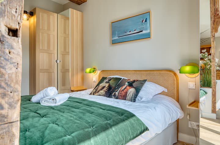 卧室安静优雅,提供舒适的空间,配有优质床上用品。 放松身心的理想去处,同时欣赏鲁昂大教堂的壮丽景色。