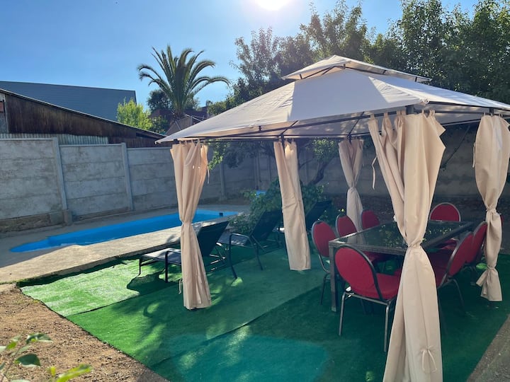 您好,我是Tamara,我邀请您在Quilpué - V地区度过一个美妙的假期,距离海滩仅几分钟车程,宽敞的房子,配有泳池、烤架、果树花园和大容量的团体;是放松身心的完美场所。