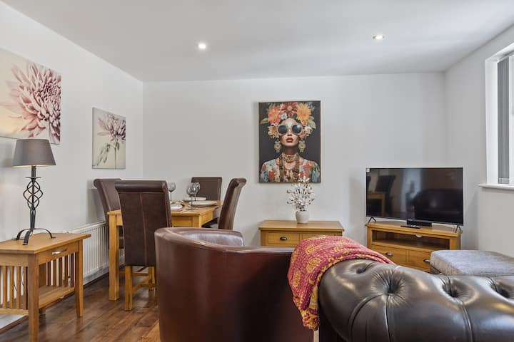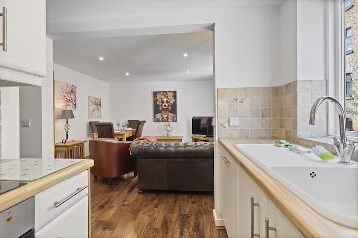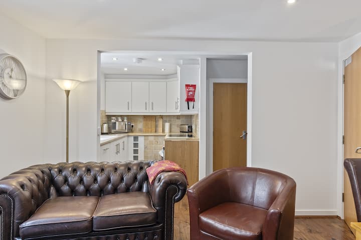 新装修的两卧室房源,位于安静的门禁开发区,距离约克市中心仅几步之遥。 宽敞的开放式起居室、两间时尚的卧室,包括一间带套房的特大号床、快速无线网络和免费的现场车库停车位。 非常适合情侣、家庭或朋友入住,舒适、安全,方便前往约克的历史景点。