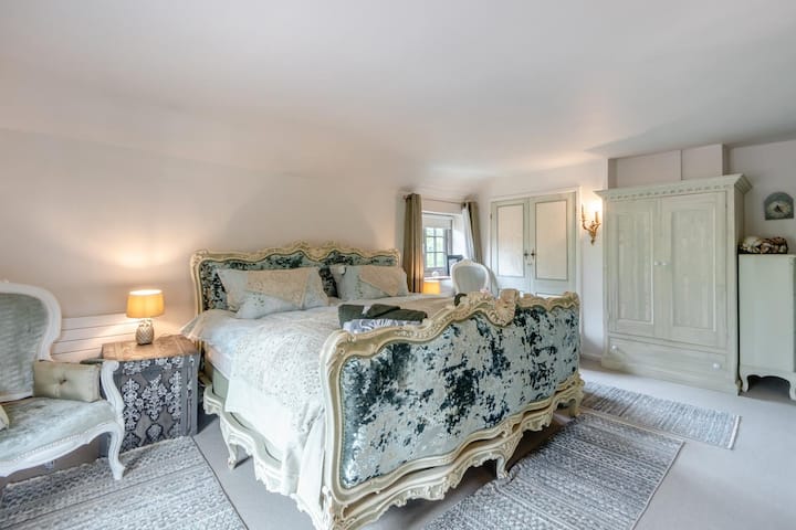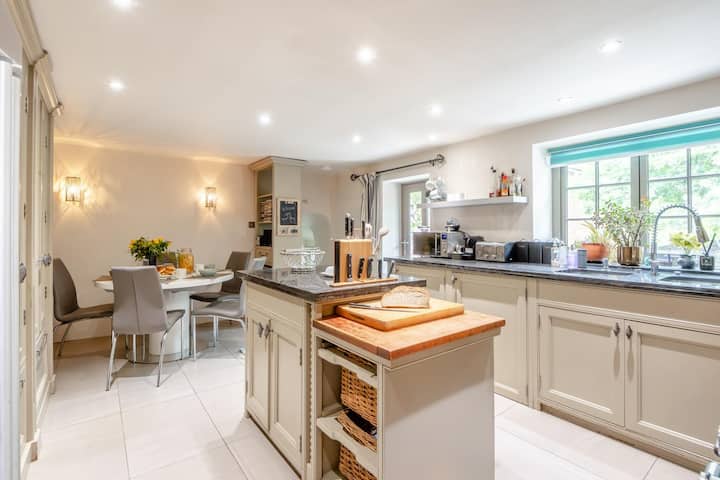 在忙碌的一天结束后,穿过迷人的小屋风格的门,进入以现代农舍风格装饰的令人愉悦的厨房/餐厅,这反映了小屋的丰富历史。 厨房/餐厅右侧的台阶通往时尚的家庭卫生间,卫生间配备了从日出到日落所需的一切设施。 在厨房/餐厅的左侧,舒适的休息室充满了质朴的触感,如石板地板、天花板梁和裸露的砖砌,让人想起往日时光。 在较凉爽的月份,点燃咆哮的燃木炉,让脚趾在夜晚保持温暖。 一楼的超大号卧室、双人卧室和双层卧室与一楼一样,拥有相同的魅力和特色,为您提供宁静的休憩场所。