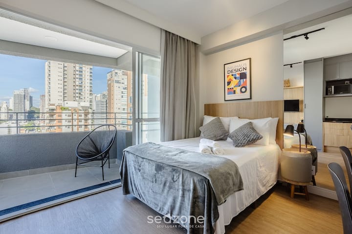 带阳台的公寓,距离Allianz Parque ODE1710仅5分钟