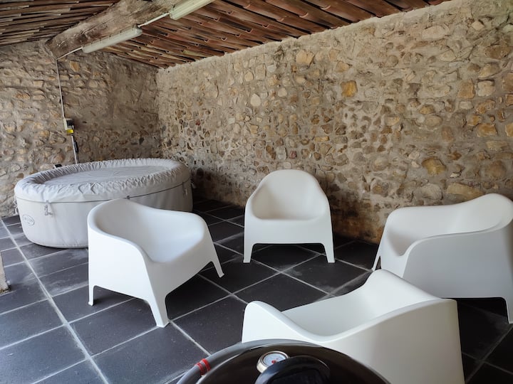 带按摩浴缸和空调的石屋