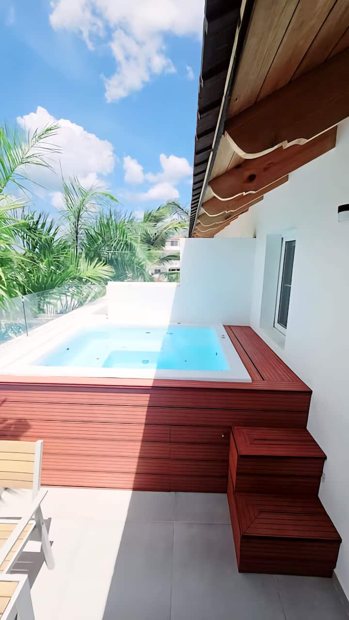 户外淋浴和按摩浴缸方便房客放松身心。