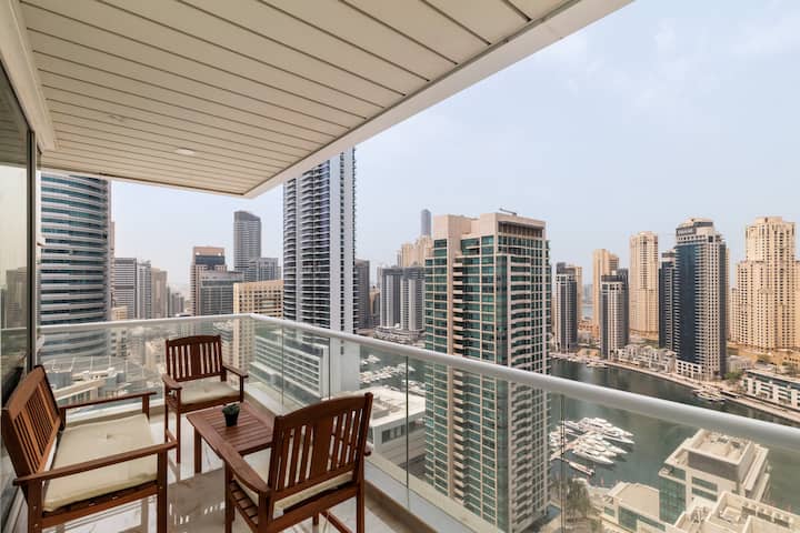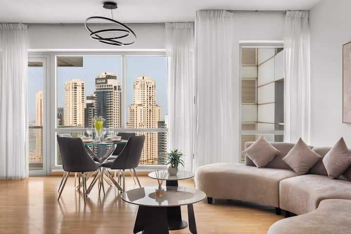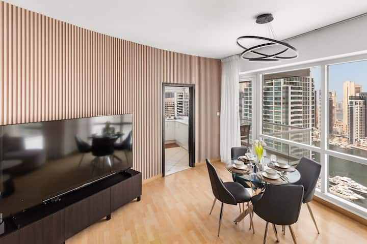 享受位于迪拜码头的这套现代化的2卧室智能公寓,欣赏海湾、运河和天际线的壮丽景色。 通过智能功能轻松控制灯光、窗帘和氛围。 靠近电车、地铁、滨海步道、海滩和滨海购物中心,提供时尚舒适、卓越的便利设施,是体验迪拜所有特色的休闲场所。