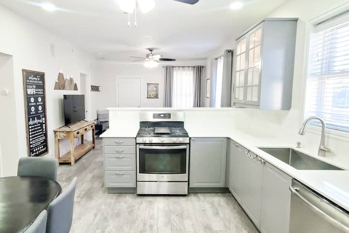 「我们在这里住得很开心!」 房子如图所示,超级干净。 房东的沟通非常好。 厨房储备充足,因此我们可以做一些家常菜。 步行即可抵达商店、餐厅和杂货店。 房源非常可爱,维护良好。 我一定会推荐。」-Donica