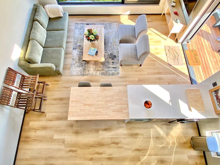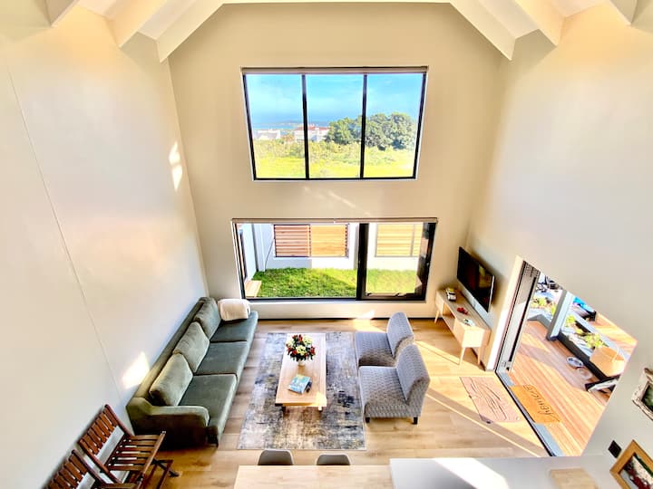 欢迎来到黑鹞鹰(The Black Harrier),您的时尚兰格班度假胜地! 这栋全新的半独立式房屋将现代设计与舒适感融为一体,距离海滩仅一小段车程。 高高的窗户和滑动门让空间充满阳光和海风。 享受2间标准双人床卧室(一间阁楼套房)、时尚厨房、带烧烤的私人露台、环绕花园和2个停车位。 非常适合情侣、朋友或家庭入住,寻找海滨度假胜地。