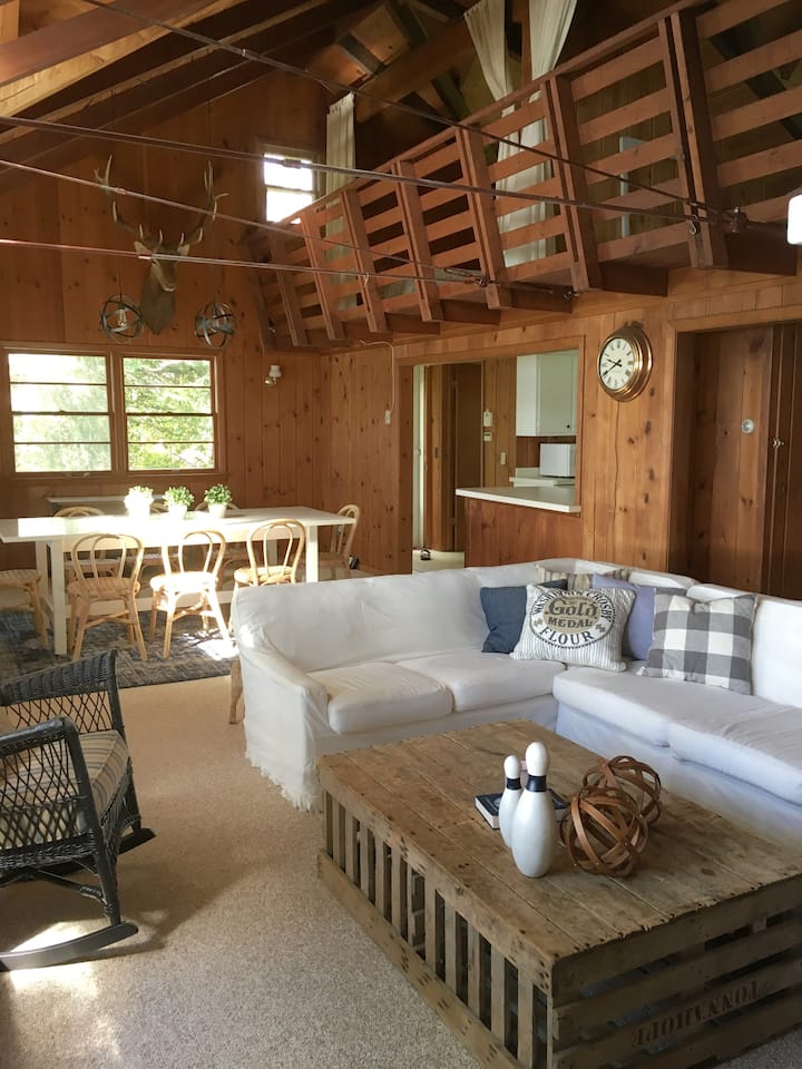 位于Bone Lake的时尚、阳光明媚的小木屋
