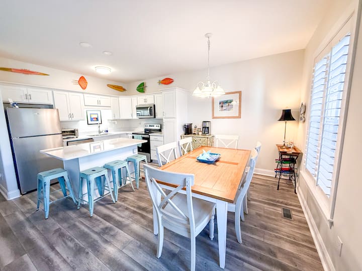 这是一套二排公寓,距离私人海滩仅几步之遥,您可以随时享受海浪声,轻松踏上沙滩。 该社区还设有海滨加热泳池,在声音方面,还有第二个泳池和私人钓鱼码头,非常适合在日落时分排队或在博格海湾( Bogue Sound )上欣赏宁静的夜景。