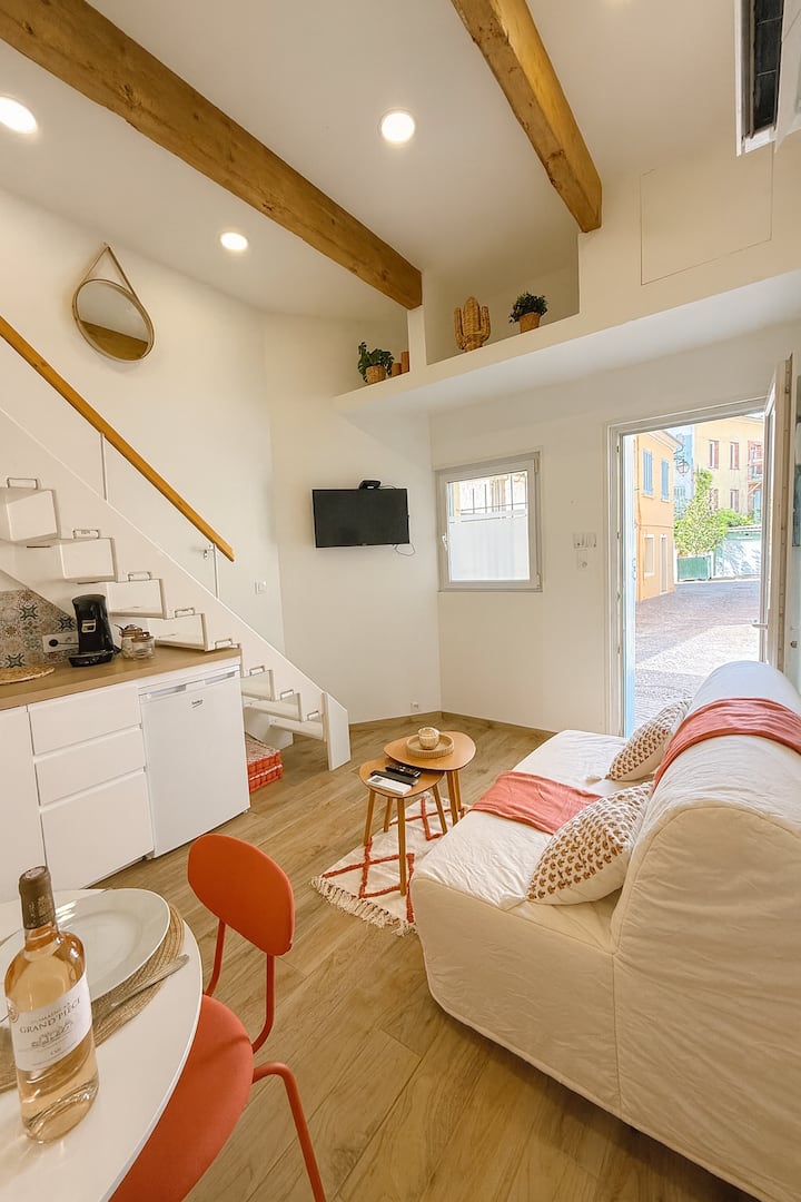 夹层卧室✅和额外的沙发床、舒适的起居室、设备齐全的厨房,通往阳光明媚的小巷……这里是度过舒适假期的完美之地。