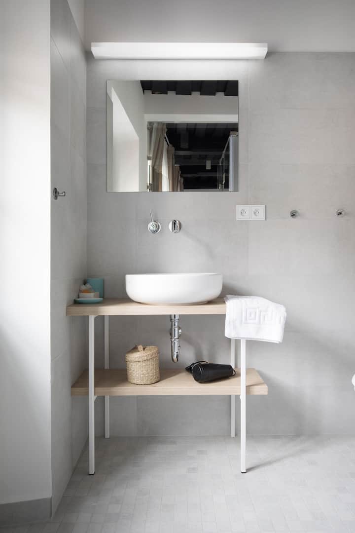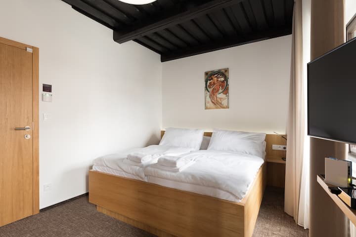快速信息:房间就像现代化的酒店房间一样。 免费自行车和寄存行李、房间内的水壶和玻璃现代浴室。 没有空调或厨房。 5分钟路程外有停车位。