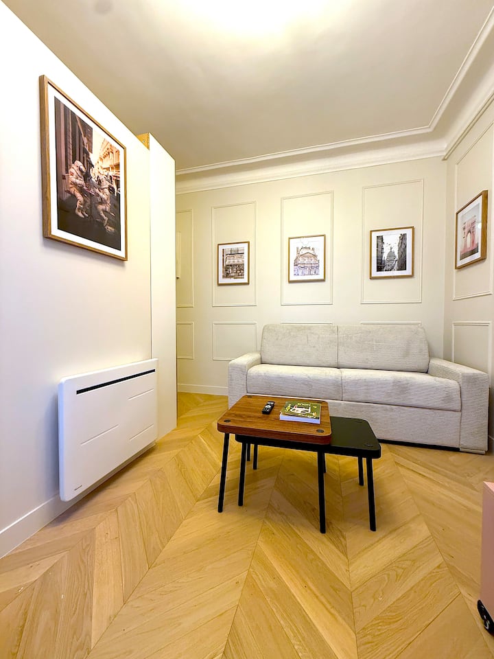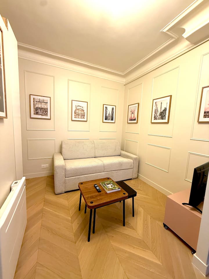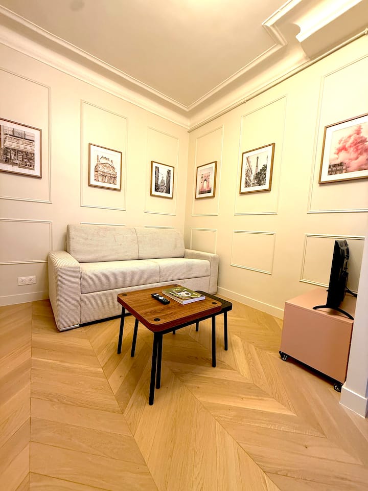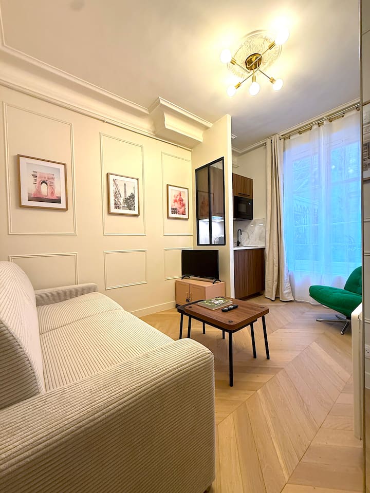 欢迎来到我可爱的新装修单间公寓,位于一楼,俯瞰著名的蒙马特区中心的一个非常安静的庭院。