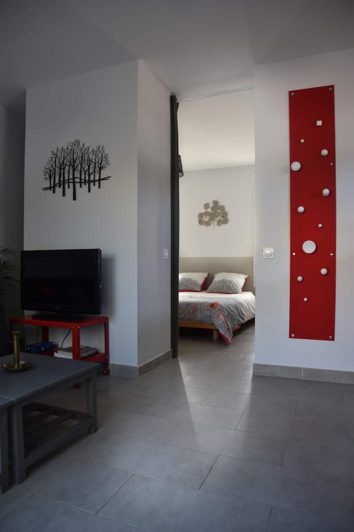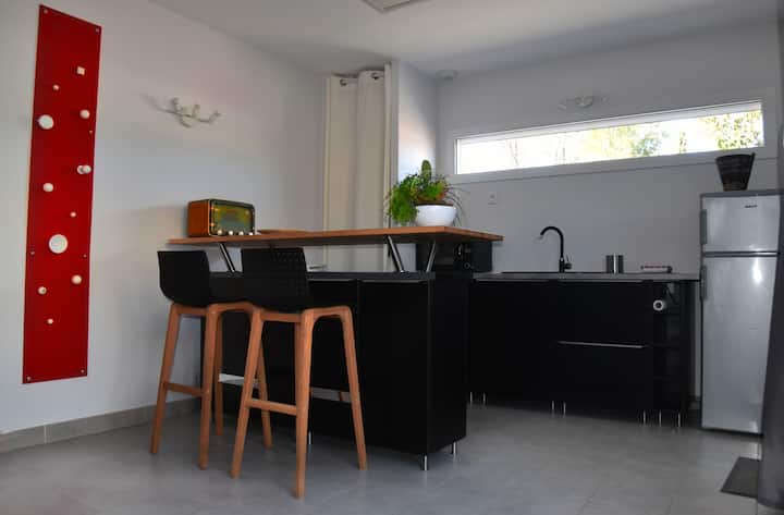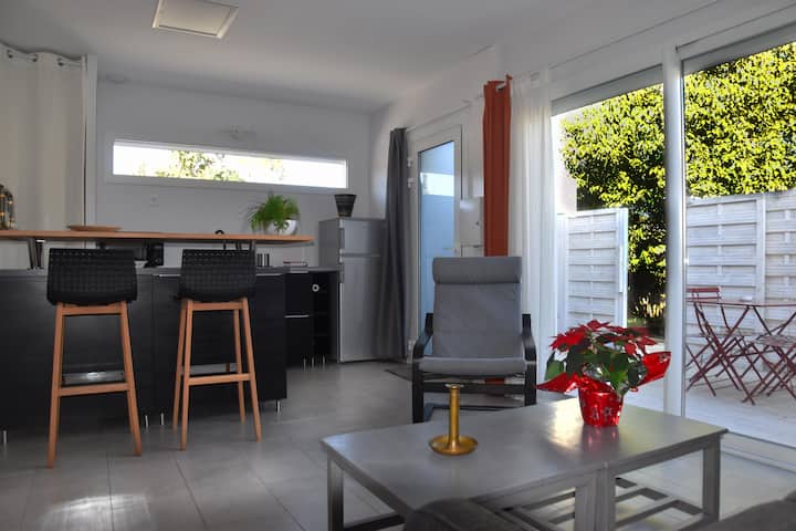 迷人的小屋,私人露台,空调,停车场