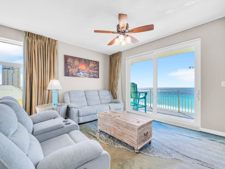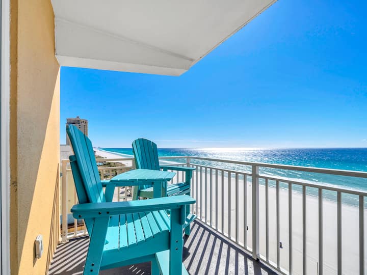 欢迎来到Sterling Reef 501 –巴拿马城海滩中心的时尚海滨度假胜地! 这套装潢精美的度假公寓位于5楼,可欣赏墨西哥湾翡翠色海水和白糖沙滩的壮丽景色。 在设备齐全的时尚厨房里烹饪您最喜爱的美食,然后在开放式起居和用餐区放松身心,欣赏不间断的海湾景观。 从客厅和主卧室可通往宽敞的海滨阳台,您可以在此享受清新的海风和迷人的全景。 主套房配有一张加大双人床和一间水疗风格的卫生间,配有定制的超大瓷砖淋浴间和优雅的盆式盥洗台,是一个宁静的度假胜地。 客房配有舒适的标准双人床,另一间客房配有双层床,非常适合团体或家庭入住,最多可供8位房客舒适入住。 住宿期间,您可以使用度假村的共享设施,包括海滨泳池和设备齐全的健身房。 无论您是来这里放松身心还是探索,Sterling Reef 501都是您打造难忘海滨回忆的理想家居基地。