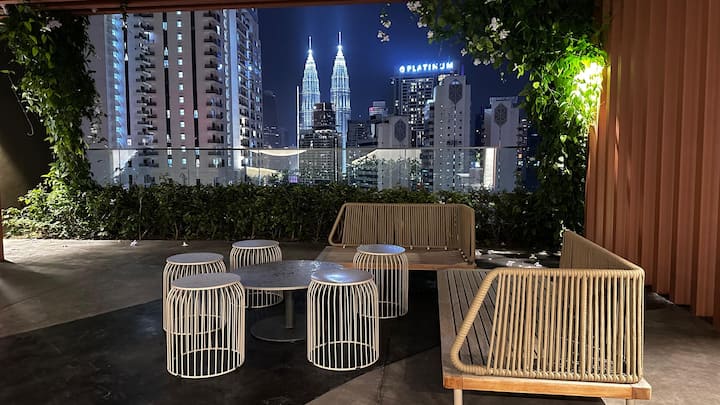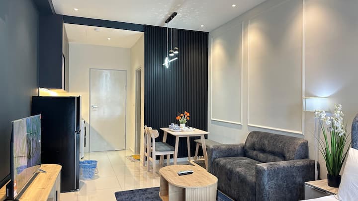舒适的套房,无边泳池,附近有地铁站。