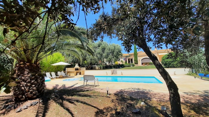 带泳池的安全庄园别墅。