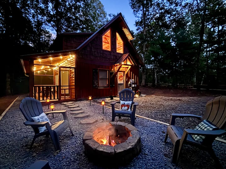 北卡罗来纳州墨菲小木屋,带火坑,森林景观,小径