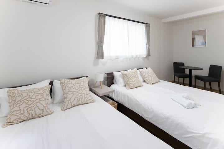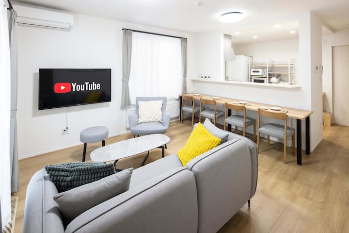 干净的空间(3LDK,最多可入住9人),可停放1辆车,非常适合家庭和团体入住。