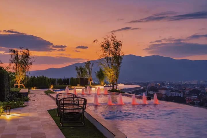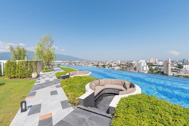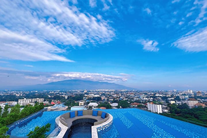 b)清迈市中心,16楼豪华景观套房ASTRA Sky River 令人惊叹的超长无边泳池